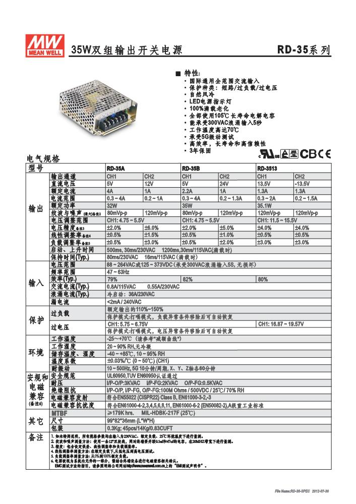 明纬双组输出开关电源RD-35系列 RD-35A,RD-35B,RD-3513
