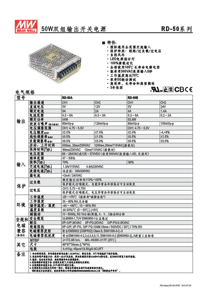 明纬双组输出开关电源RD-50系列 RD-50A,RD-50B