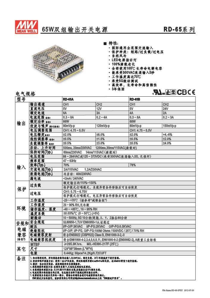 明纬双组输出开关电源RD-65系列 RD-65A,RD-65B