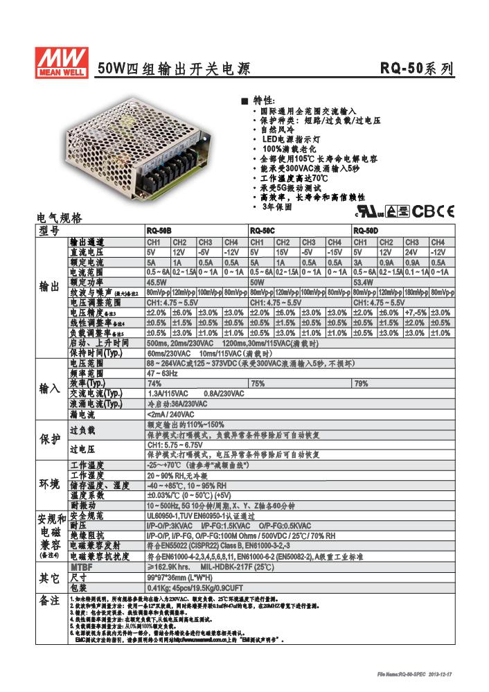 明纬四组输出开关电源RQ-50系列 RQ-50B,RQ-50C,RQ-50D