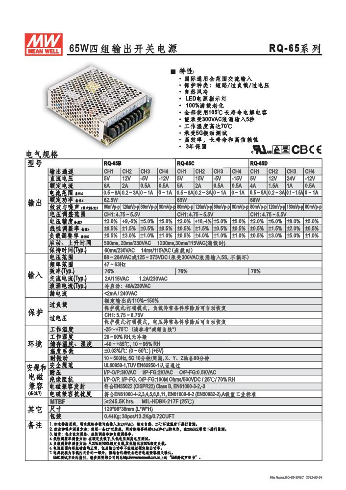明纬四组输出开关电源RQ-65系列 RQ-65B,RQ-65C,RQ-65D