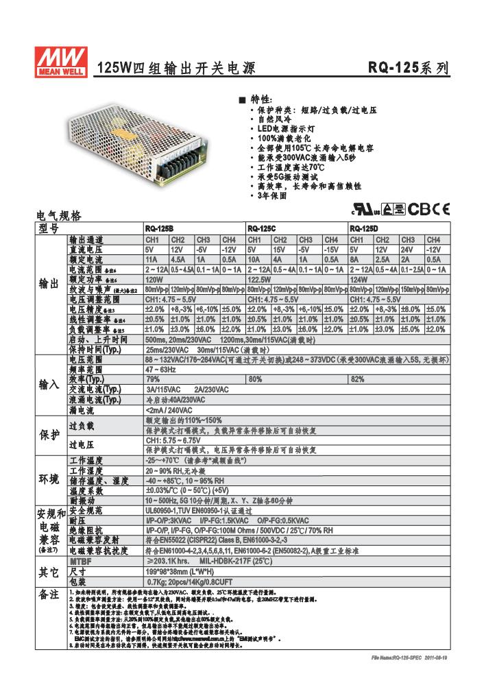 明纬四组输出开关电源RQ-125系列—深圳明纬开关电源一级代理商