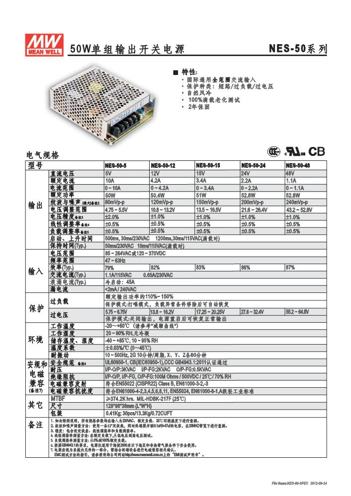 明纬开关电源NES-50系NES-50-5,NES-50-12,NES-50-15,NES-50-24,NES-50-48