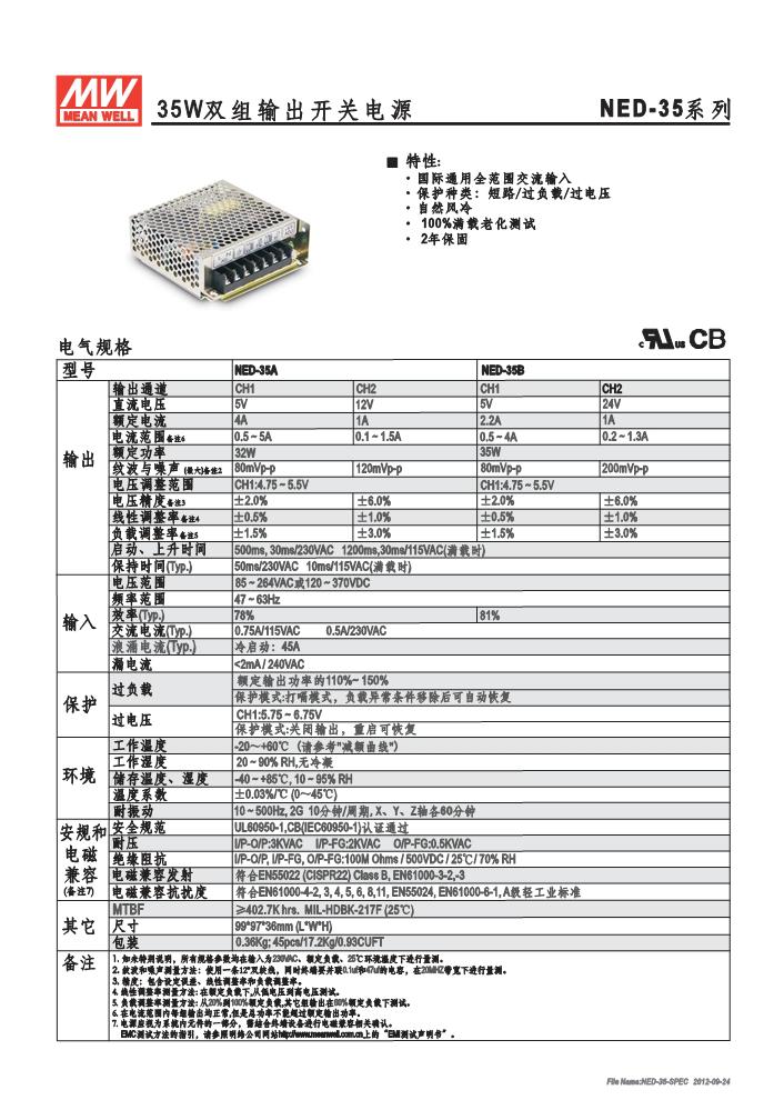 明纬开关电源NED-35系列 NED-35A ,NED-35B