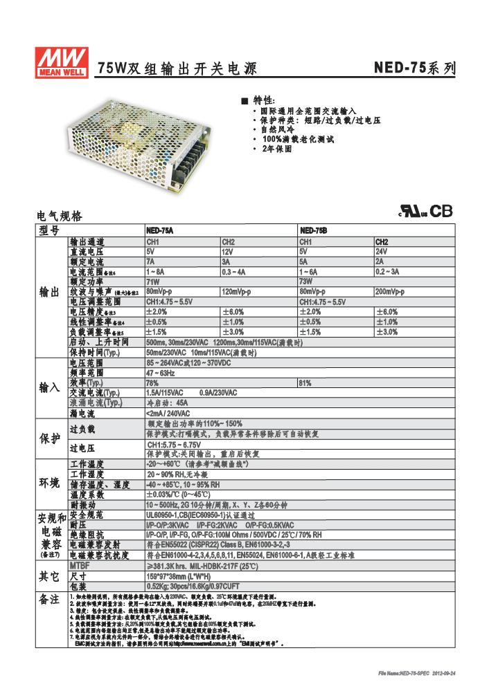 【产品名称】明纬双组输出开关电源NED-75系列—深圳明纬开关电源一级代理商